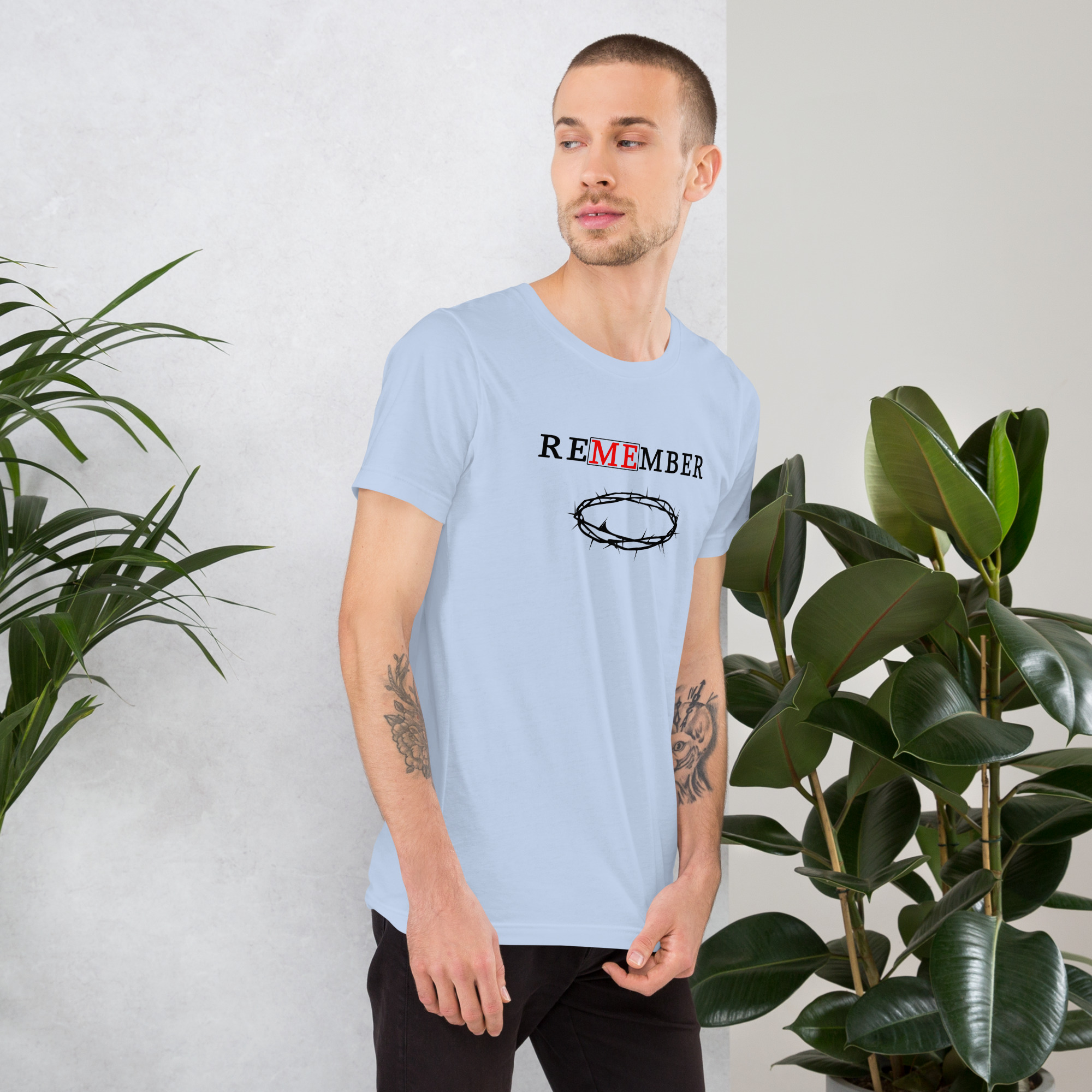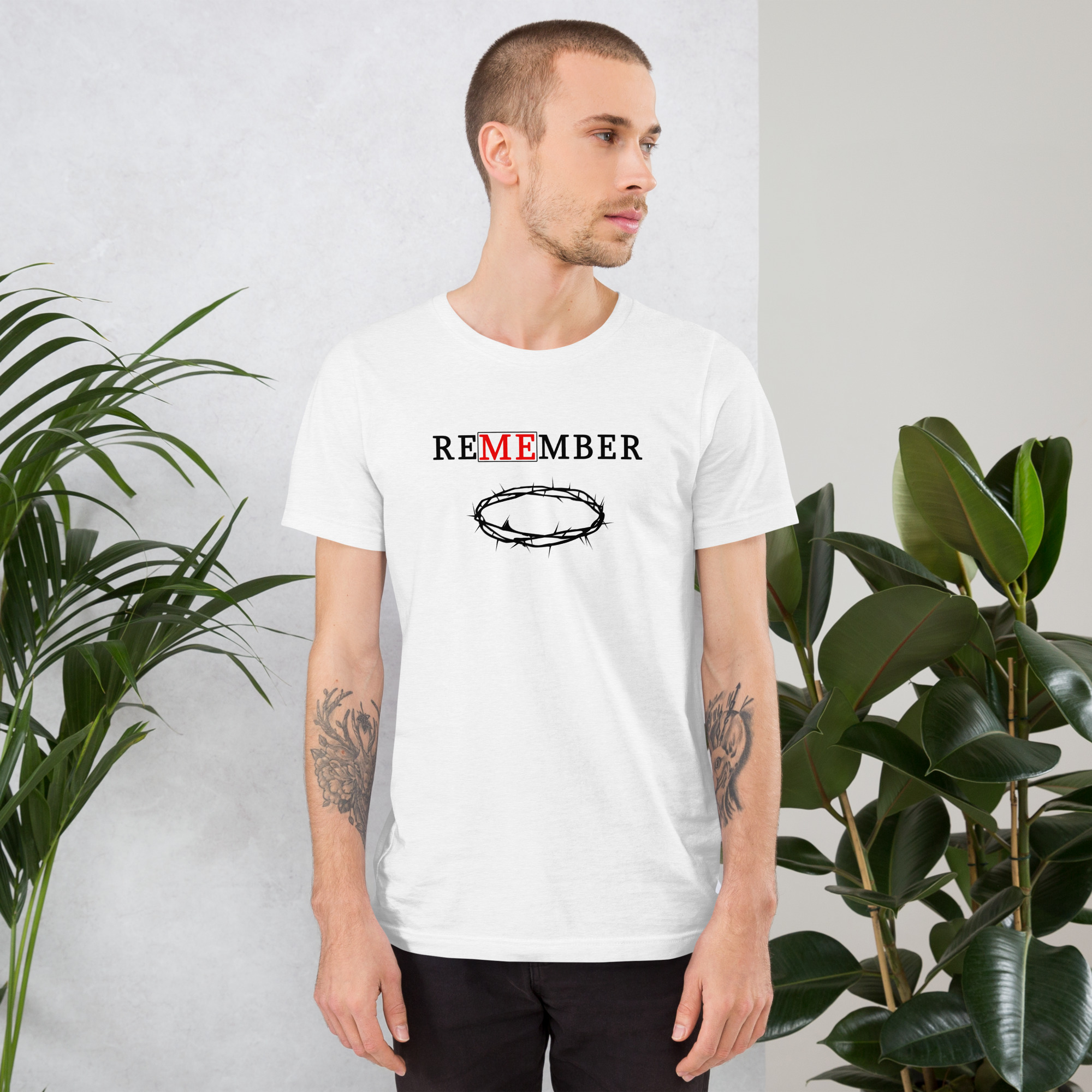 The Men’s “Remember Me” Crown of Thorns Christian T-Shirt in Black Text is designed for comfort, durability, and bold faith expression. Made from premium combed and ring-spun cotton, this short-sleeve tee is soft, lightweight, and breathable, with the right amount of stretch for a comfortable, flattering fit.